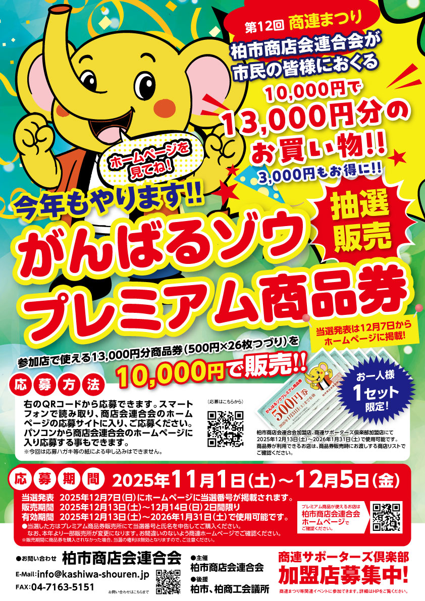 1セット13,000円(500円券×26枚)の商品券を10,000円にて1400セットの販売を行わせていただきます。(プレミアム率30%)